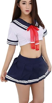 Unibaby Girls Cosplay School Girl Lingerie Set Tie Top Mini Skirt Costumes Sailor Outfit with Stocking